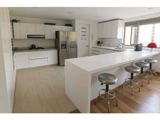 El apartamento tiene 245 mts2, cocina abierta remodelada integrada al comedor, alcoba y baño de servicio y zona de ropas independiente.
