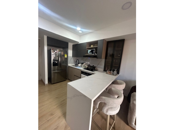 Apartamento en sabaneta consta de : 55m2, dos habitaciones con closet , la principal con vestier, estudio, cocina moderna, 2 baños con cabina, zona de ropa independiente, balcon con buena vista, piso medio ,parqueadero, cuarto util