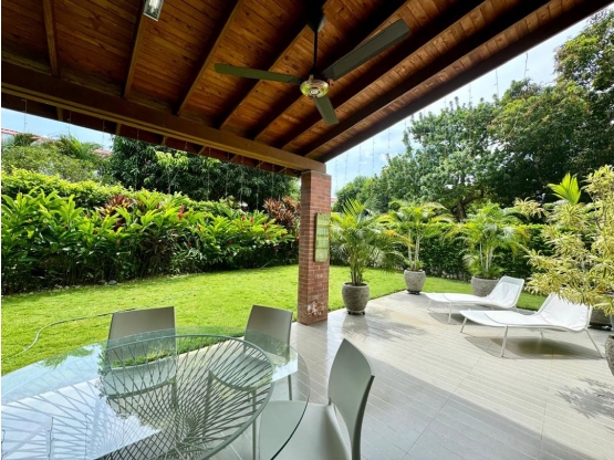 Hermosa cabaña a 10 minutos del parque de Sta fe de Antioquia Se vende a puerta cerrada, completamente amoblada. Para 10 personas. Dotacion de cocina en vajilla y cubiertos para 16 personas. 3 habitaciones en la segunda planta, todas con baño, 1 baño social, salon, comedor independientes, dos terrazas. Todas las habitaciones con Aire Acondicionado y ventiladores, lo mismo que el Salón y el comedor.Unidad con varias piscinas para niños y adultos Cancha polideportiva Senderos Jardín Salón social muy amplio y dotado en mesas y sillas para hacer sus eventos Predial : $ 1.512.000