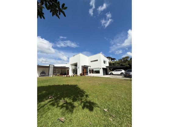 cuarto de servicio con baño, zona de ropas, estudio, baño social, amplia habitación con vestier, baño y estudio, terraza con deck con una amplia zona verde plana, parqueadero con cuarto útil.