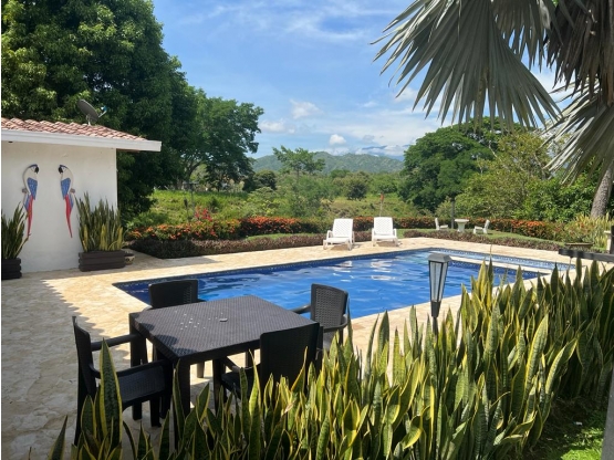 Lote de 11.200 mt, con zona de bosque, frutales, agua propia para riego, casa de 250 metros, 3 habitaciones con bano, amplia sala, comedor y cocina con isla, zona de corredor frontal para hamacas y sala, zona de ropas, piscina y zona verde, habitación aparte completa para mayordomo con cocina y baño, cuarto de herramientas, juegos infantiles.